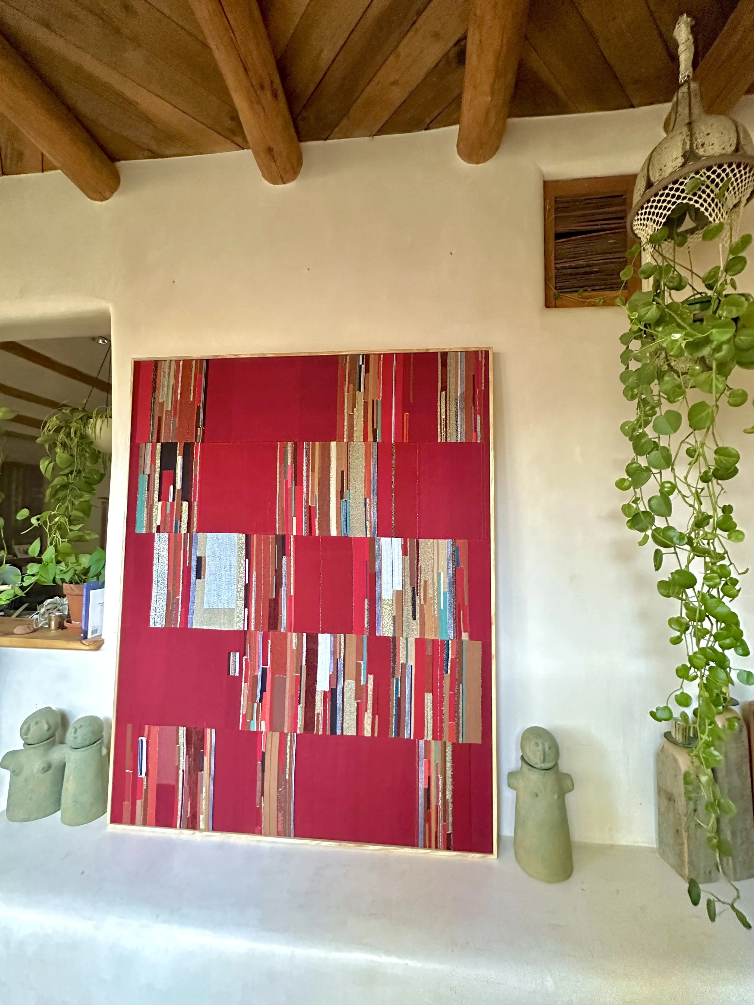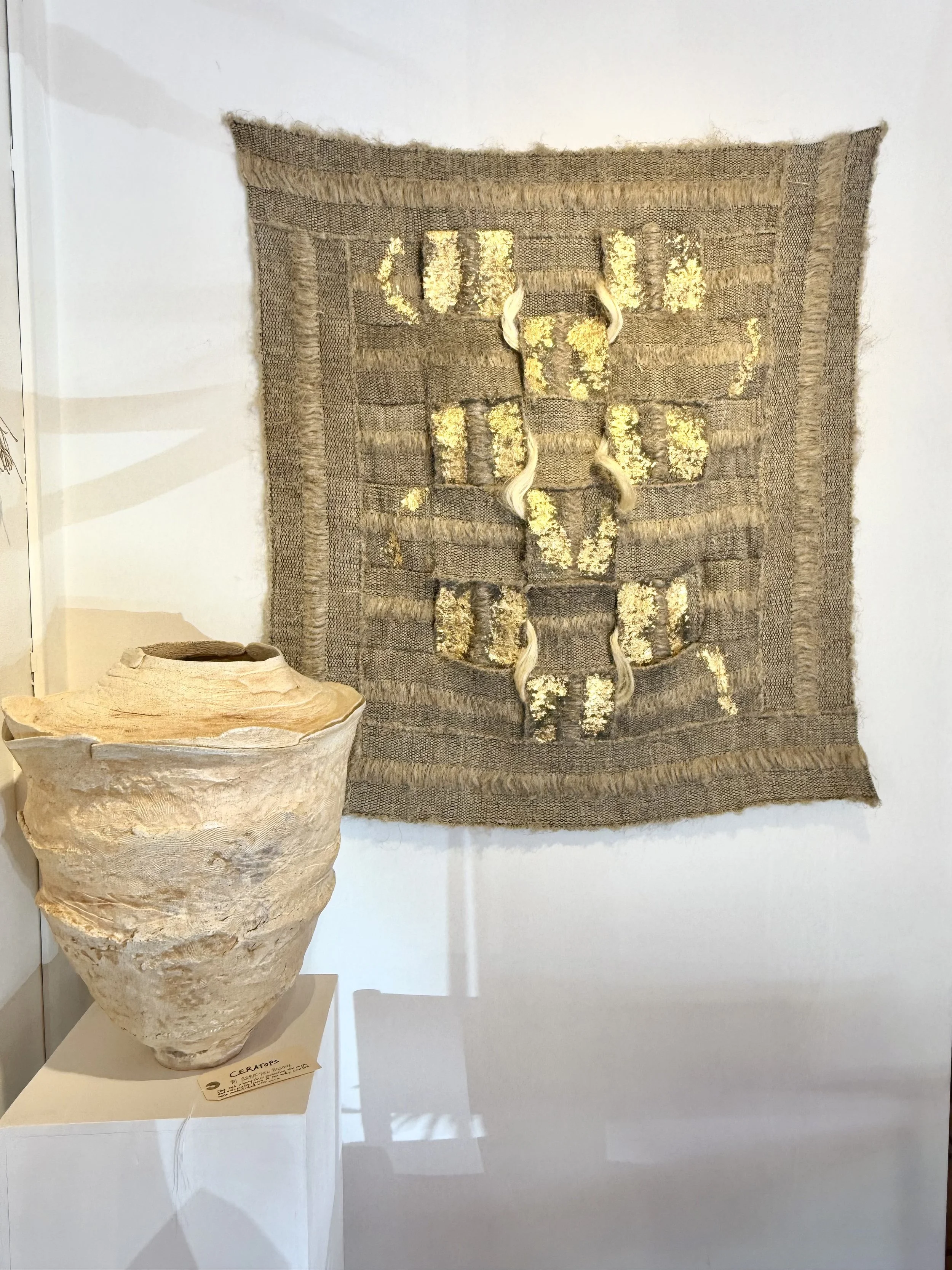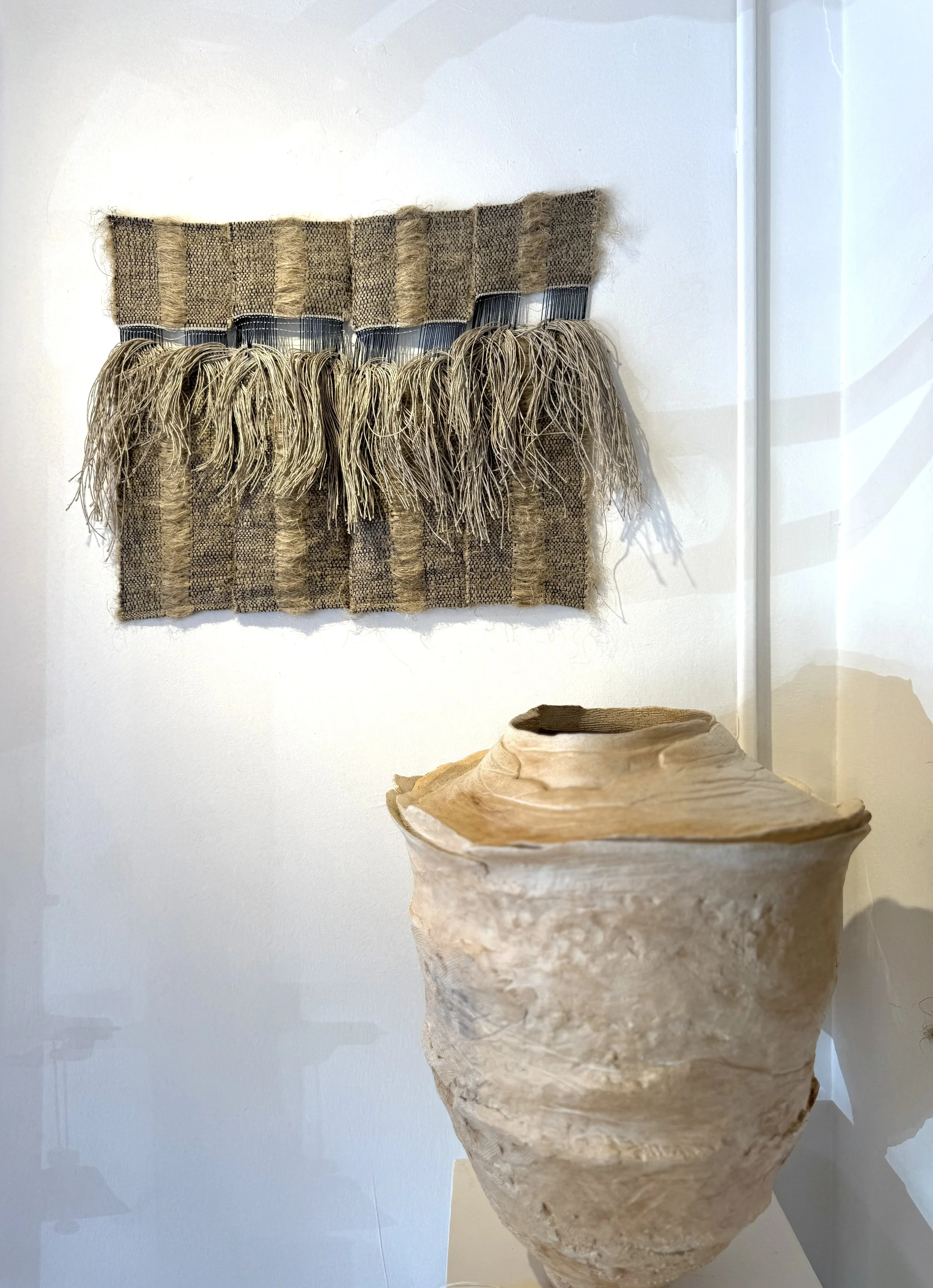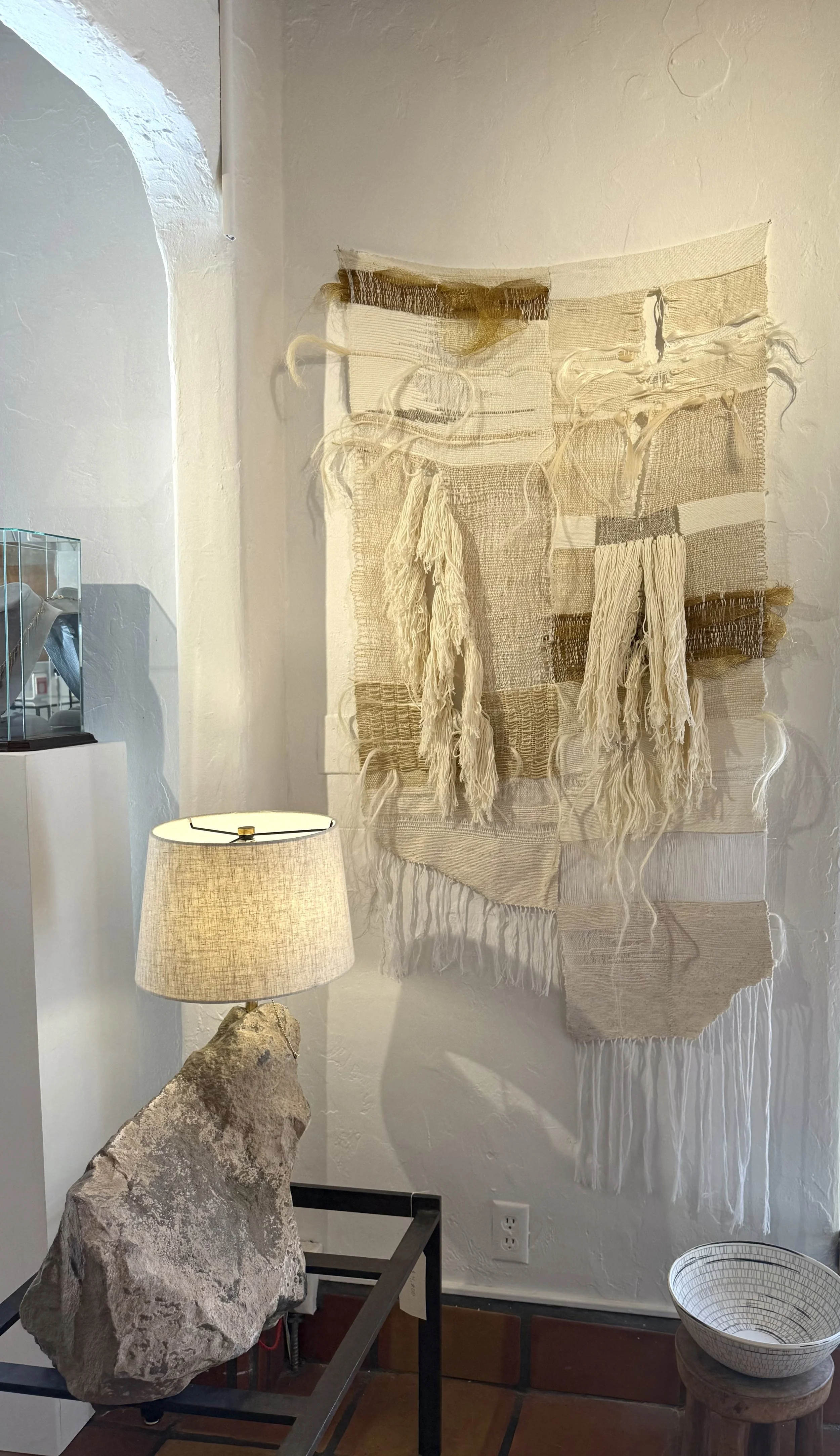 Here is the piece in agave fiber, horsehair, churro wool, jute & wool I have been engaged in, hand combing every thread, experiencing a tension the higher I rise towards the top of the weaving, which honestly makes me squirm like nails on a chalkboard. I never knew I’d feel a visceral reaction to tension this way on a loom but I don’t like it being so thick I have to actively use my left middle finger to hold it taught just to weave the weft in.